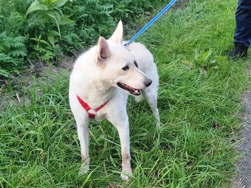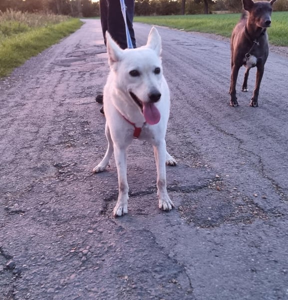 Kokusz ist eine sensible Hündin, die ihre Umgebung aufmerksam beobachtet und dabei interessiert am Familienleben teilnimmt. Sie läuft bereits super an der Leine, genießt Spaziergänge und hat sogar Freude daran, am Scooter oder Fahrrad mitzulaufen. Auch das Autofahren klappt problemlos. In manchen Momenten ist sie noch etwas schreckhaft, was nach ihrer langen Zeit im Tierheim verständlich ist, doch sie taut jeden Tag ein Stückchen mehr auf und gewinnt sichtbar an Selbstvertrauen.