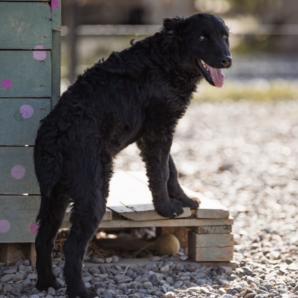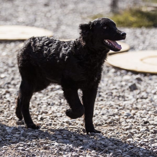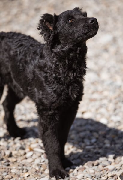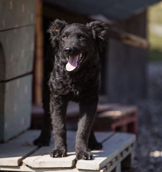 Chandler ist ein junger Bub, laut Tierarztschätzung ca. 4,5 Monate alt (geb. am 01.03.2025), wiegt etwa 10 kg und ist ca. 45 cm groß. Vermutlich handelt es sich um einen Mudi-Kroatischen Schäferhund-Mix. Die Spitze seiner Rute fehlt – vermutlich wurde er so geboren.