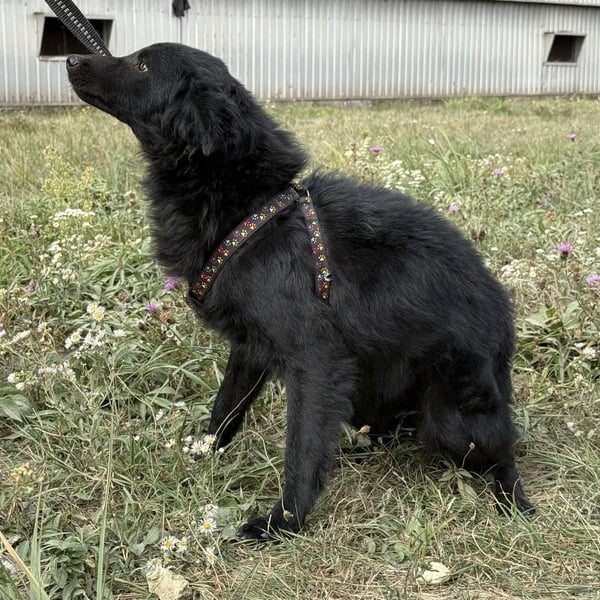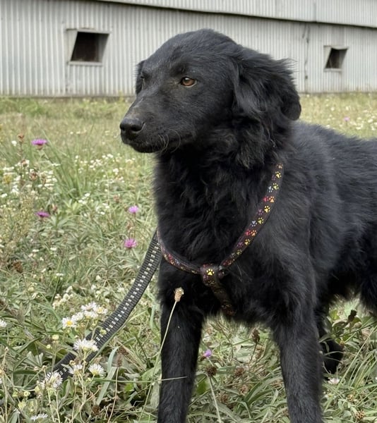 Lena ist ein Mädchen, laut Tierarztschätzung ca. 1 Jahr alt (geb. 02.09.2024), wiegt 11,3 kg und ist 45 cm groß. Vermutet wird ein Retriever-Collie-Mudi Mischling.
