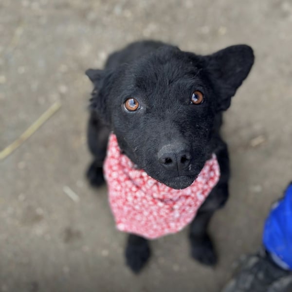 Layla ist ein Mädchen, sie ist laut Tierarztschätzung ca. 1,5 Jahre alt (geb. 10.07.2024), wiegt etwa 15 kg und ist ca. 48 cm groß. Vermutet wird ein Mudi Mischling. Sie hat nur einen kleinen, schief verwachsenen Stummel als Rute – vermutlich ist sie mit kurzer Rute geboren, die mal gebrochen war und so verheilte.