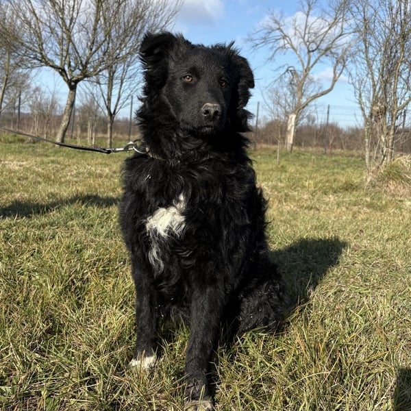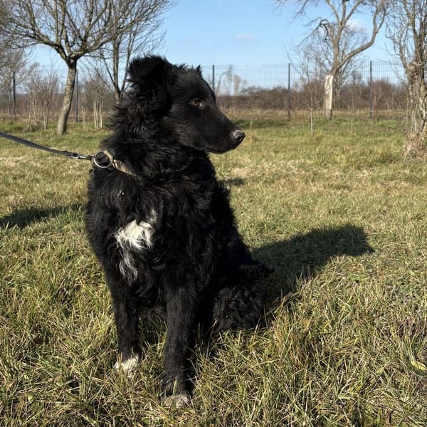 Charlie ist ein Bub. Er ist laut Tierarztschätzung ca. 9 Monate alt (geb. 20.04.2025). Er wiegt 16kg und ust ca. 50cm groß. Vermutet wird ein Mudi- Border Collie-Kroatischer Schäferhund Mix. Er wird noch minimal wachsen, bleibt kniehoch/mittelgroß bis ca. 18kg.