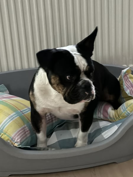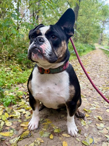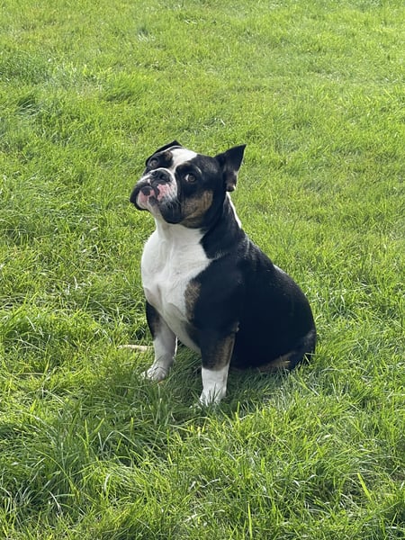 Oscar ist ein vierjähriger Old English Bulldog, der ein neues Zuhause sucht, weil seine bisherigen Halter mit den Ansprüchen, die er an seine Menschen stellt, überfordert sind.