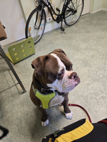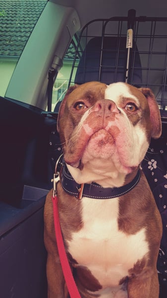 Spike bekam in seinen ersten Lebenswochen leider keine Sozialisierung und müsse alles nach der 12 Woche erlernen... zb Fahrradfahrer, Vorbei fahrende Autos, Menschen die vorbei gehen usw.