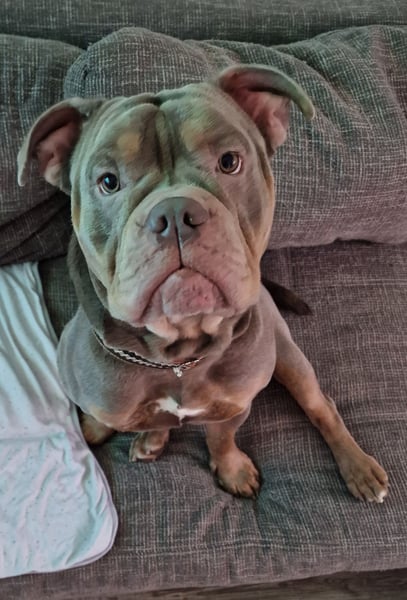 Unser Dobby ist ein 4 Jahre alter, reinrassiger Old English Bulldoggen-Rüde, unkastriert, geimpft und gechipt.