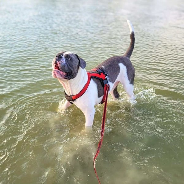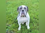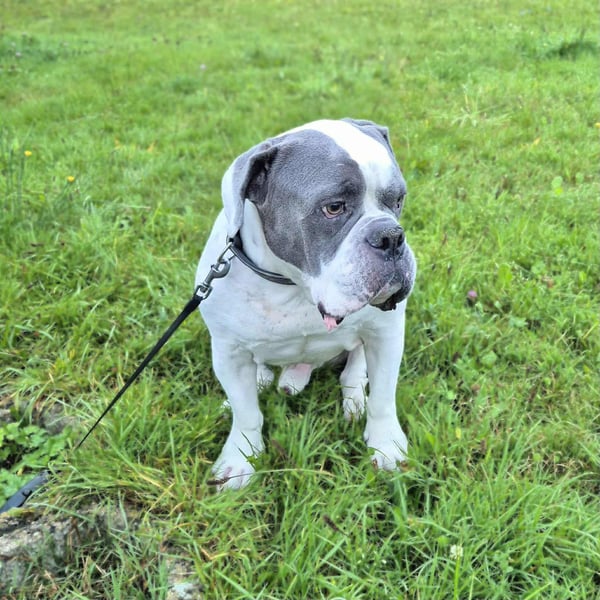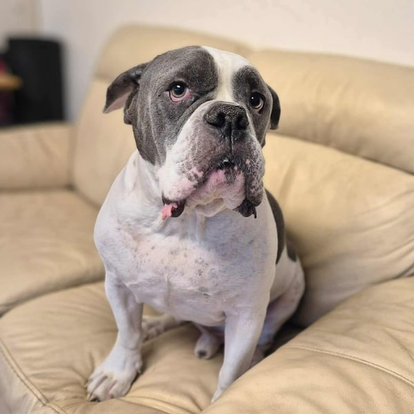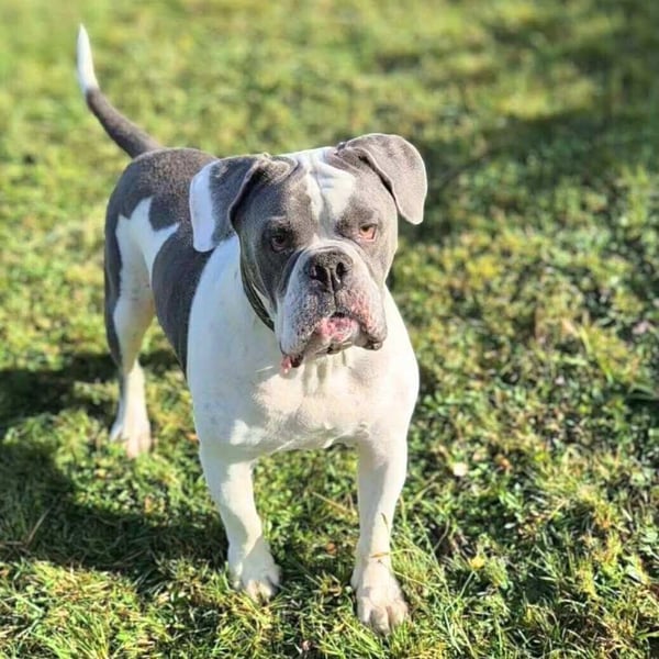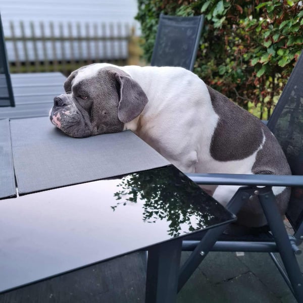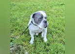 Der 5-jährige Old English Bulldog-Rüde Nigel sucht nach dem Tod seines Herrchen leider ein neues Zuhause. Dafür kommt aber nur eine sehr wohlhabende Familie infrage. Warum? Weil der arme Kerl wirklich alles an Qualzuchtmerkmalen und Begleitsymptomen seiner Sonderfarbe mitgenommen hat, was geht. So viel, dass wir es als Liste aufzählen müssen: