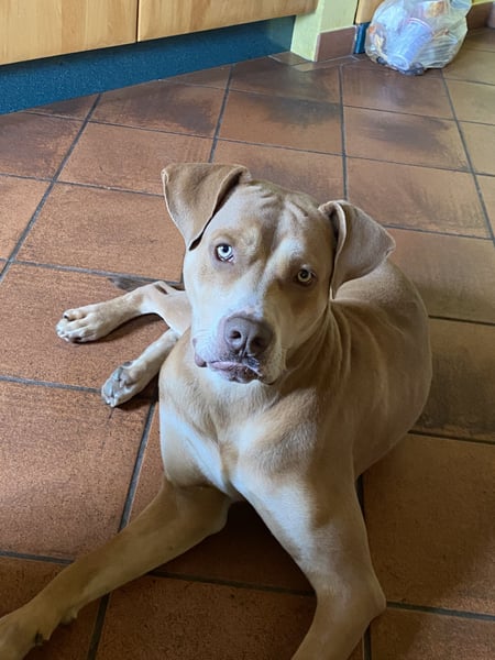 Bis auf eine Ohrennekrose die wir behandeln ist der Junge gesund. Er hat einen Gentest und unterliegt keiner Liste und ist auch im Alltag ohne Maulkorb und Leine sehr gut zu führen.