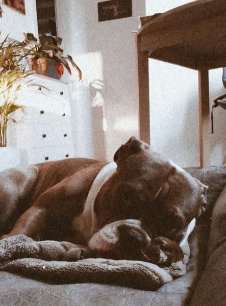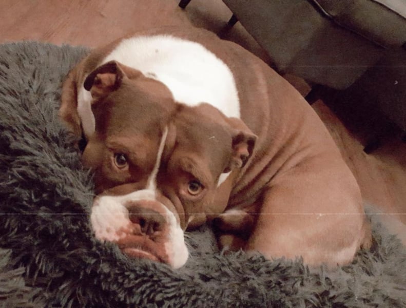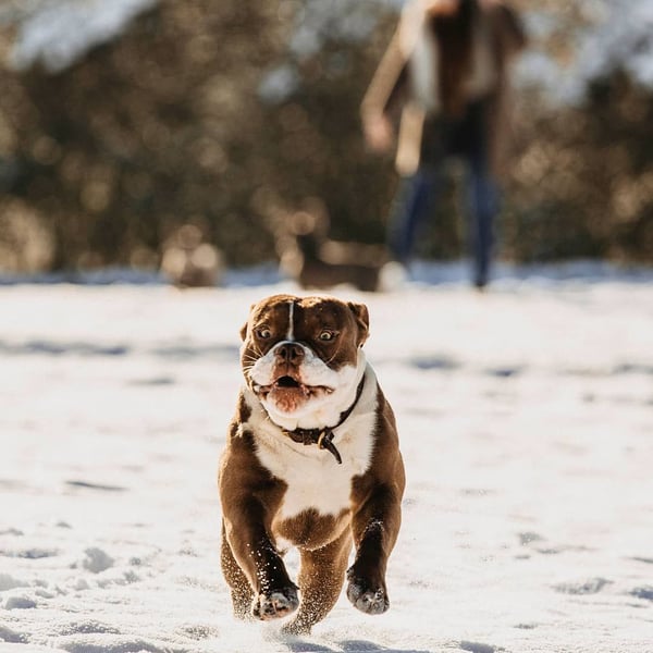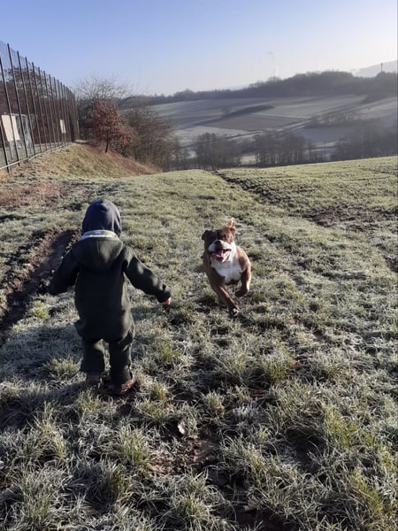 Berry ist ein 2019 geborener unkastrierter Rüde - seine Mutter ist eine englische Bulldogge, sein Vater OEB. Da er sich nicht für läufige Hündinnen interessiert und auch sonst ein unkomplizierter Rüde ist, gab es für uns keinen Grund ihn kastrieren zu lassen.