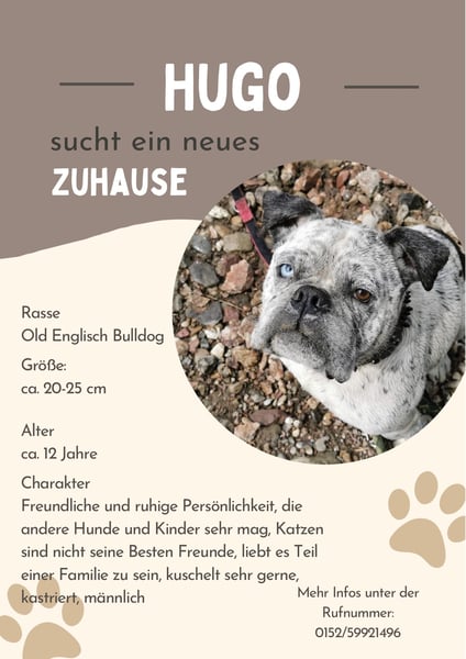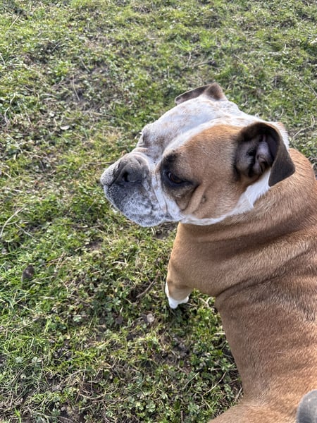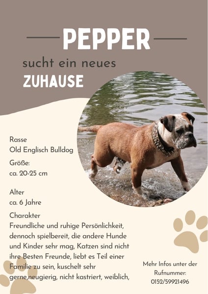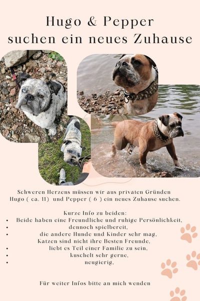 Schweren Herzens müssen wir ein neues Zuhause suchen für unsere zwei Old English Bulldogs Pepper und Hugo.