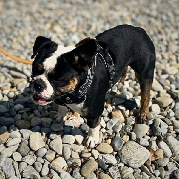 Der 22 kg schwere, kastrierte Rüde ist Menschen gegenüber grundsätzlich freundlich und offen. Bei souveräner, klarer Führung zeigt er sich ansprechbar, kooperativ und reagiert sensibel auf Körpersprache und Korrekturen, auch mit Futter lässt er sich bei souveräner Führung gut motivieren. Im Auto fährt er problemlos mit und kann alleine bleiben.
