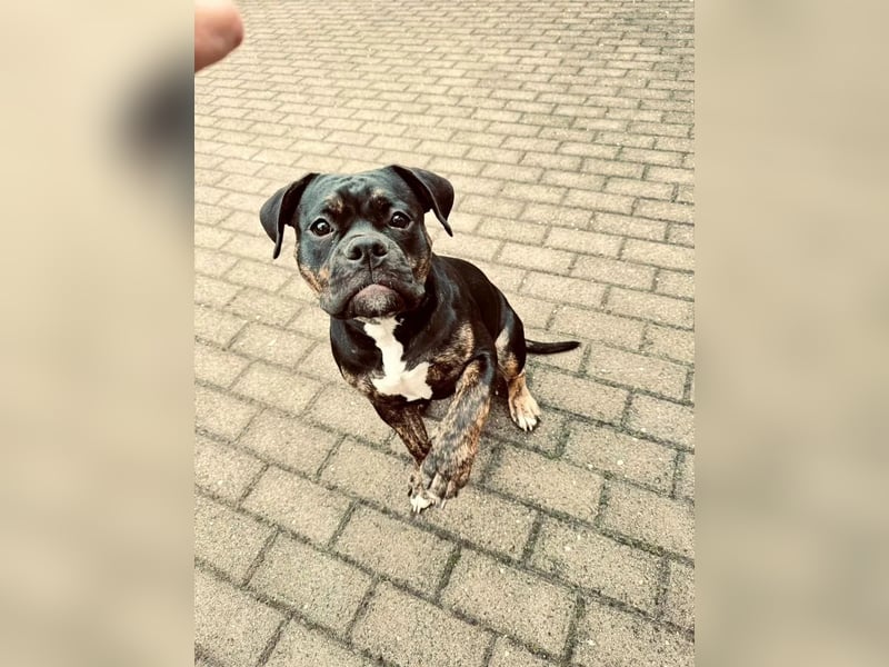 Bezaubernde, knapp 2 jährige Old English Bulldog Hündin abzugeben.
