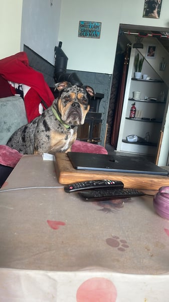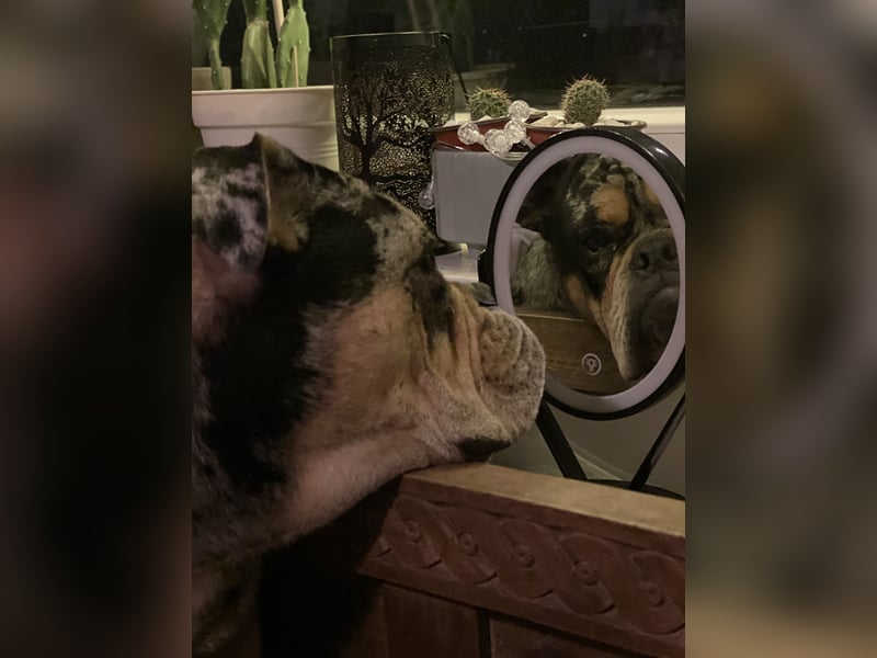 Buddy ist ein zweijähriger, kastrierter Old English Bulldoggen Rüde mit Merle-Färbung. Er ist gesund, gechipt und ein sehr menschenbezogener Hund.