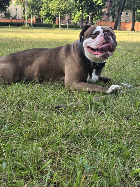 Er kuschelt sehr gern und liebt es, mit Bällen, Stöckern und Seilen zu spielen, Bewegung und gemeinsame Spiele machen ihm großen Spaß!