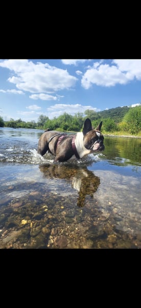 Wir verkaufen unsere liebe Hündin Nala. Sie wurde uns damals als Französische Bulldogge vermittelt, ist aber höchstwahrscheinlich eine Old English Bulldog. Wir können nicht mit Sicherheit sagen, ob sie reinrassig ist, aber so steht es in ihrem Impfpass.