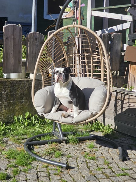 Kinder sollten schon etwas älter sein, da er bulli-typisch manchmal etwas zu stürmisch ist.