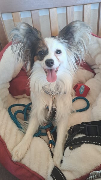 Geboren wurde sie am 13.08.2022 und ist ein white sabel Langhaar Papillon.