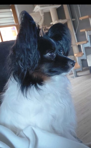 Aktuell lebt sie mit 2 weiteren Papillons und 2 Katzen ( die Katzen liebt sie sehr!) allerdings geht sie im Rudel leider sehr unter.