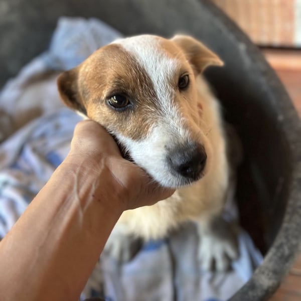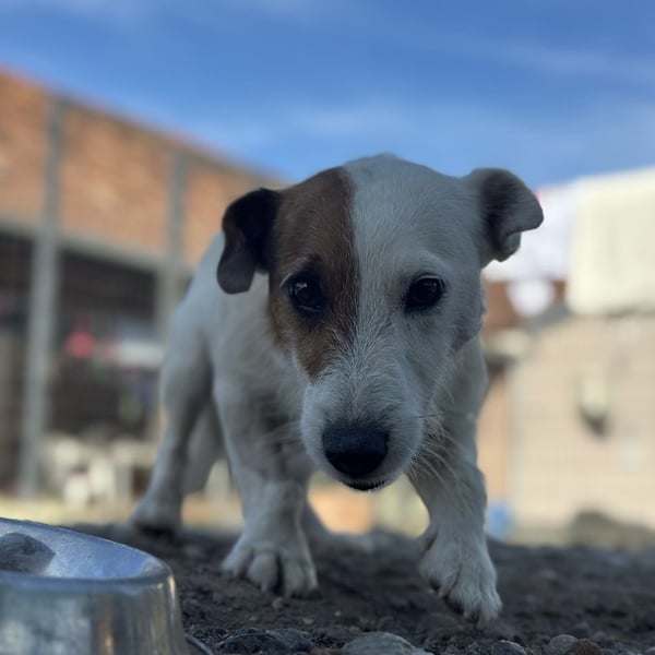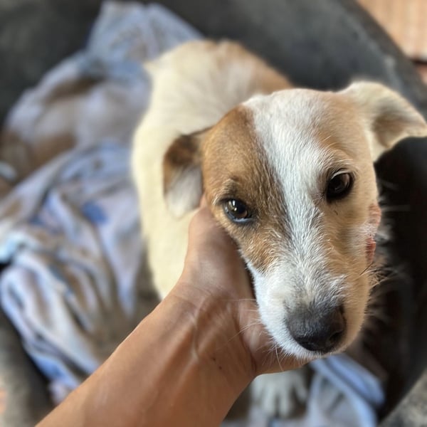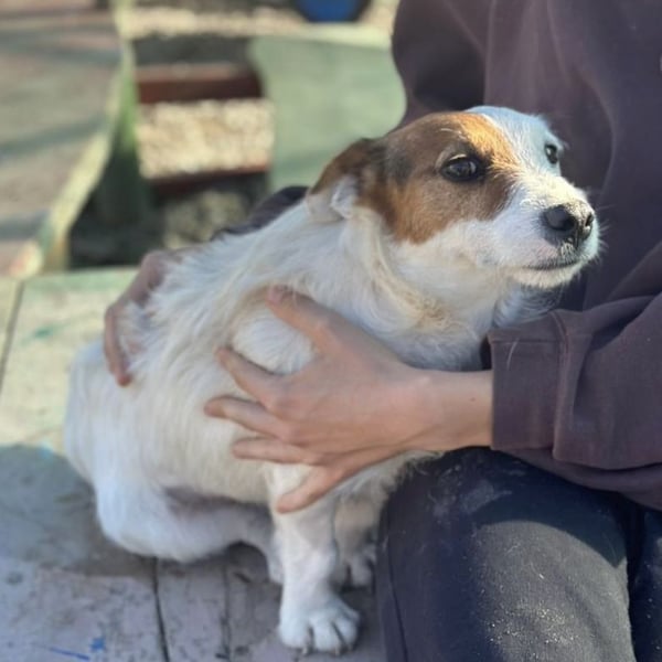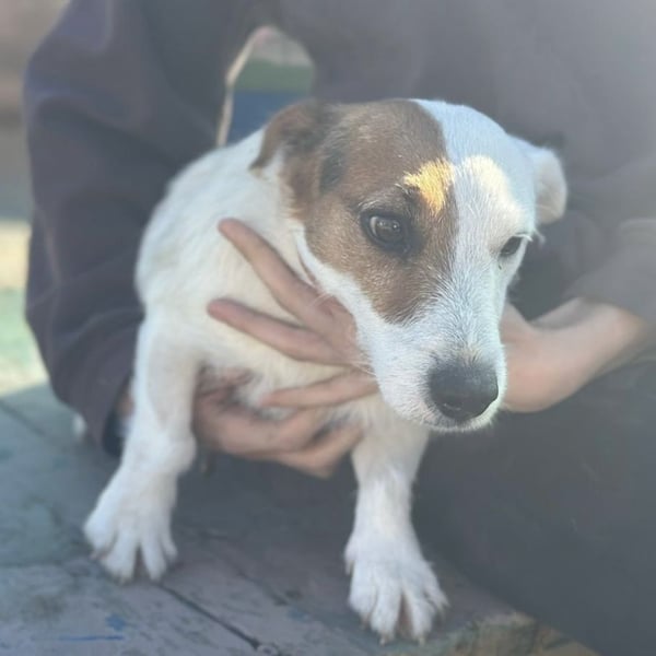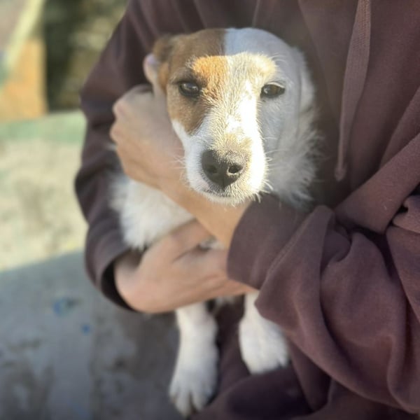 Andrija ist ein Bub, laut Tierarztschätzung ca. 1,5 Jahre alt (geb. 07.04.2024), wiegt nur 5 kg und ist etwa 30 cm groß. Vermutet wird ein sehr kleinwüchsiger Parson Russel / Jack Russel Terrier.