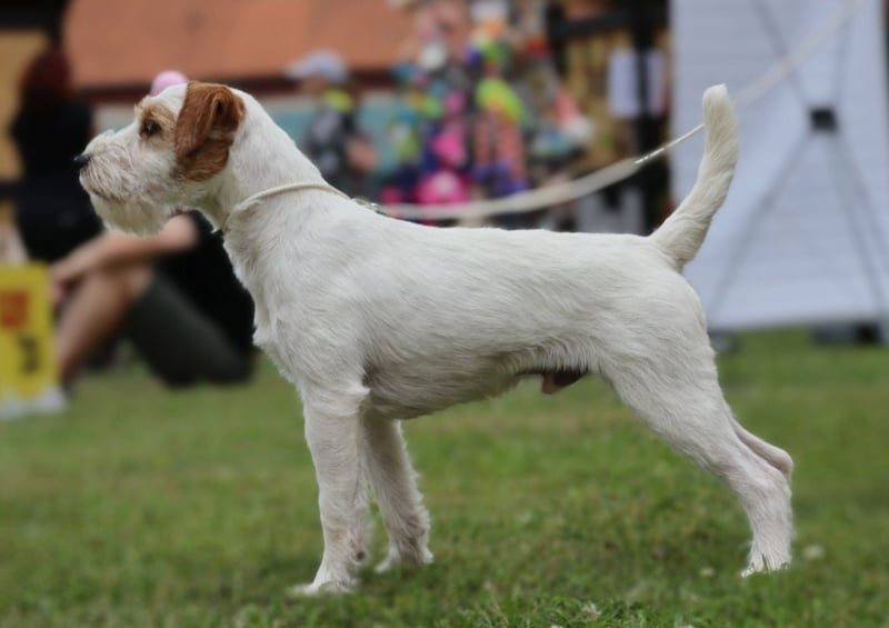 Geboren: 22.10.2022, Größe: 36 cm, dunkle Augen. Scherengebiss. Zuchtrüde. Wird für die Feld- und Waldjagd eingesetzt.