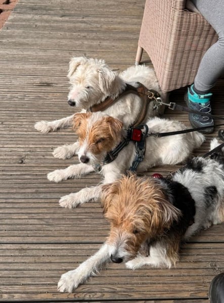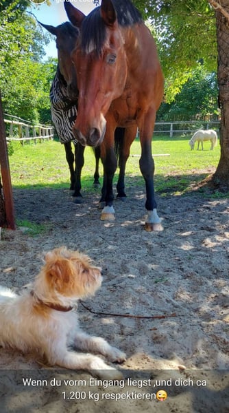 Ludvic lebt mit meinem Briard zusammen, er ist problemlos bei den Pferden.., begleitet auch auf Ausritten, zeigt kein Jagdverhalten dabei.....einfach ein wunderbarer, fröhlicher Begleiter in allen Lebenslagen.