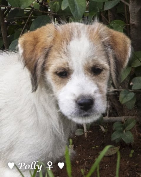Molly sieht tatsächlich aus wie ein Goldie Mix in klein, Polly wie ein Parsons -Terriermix, Lucio könnte einen Malteser drin haben.