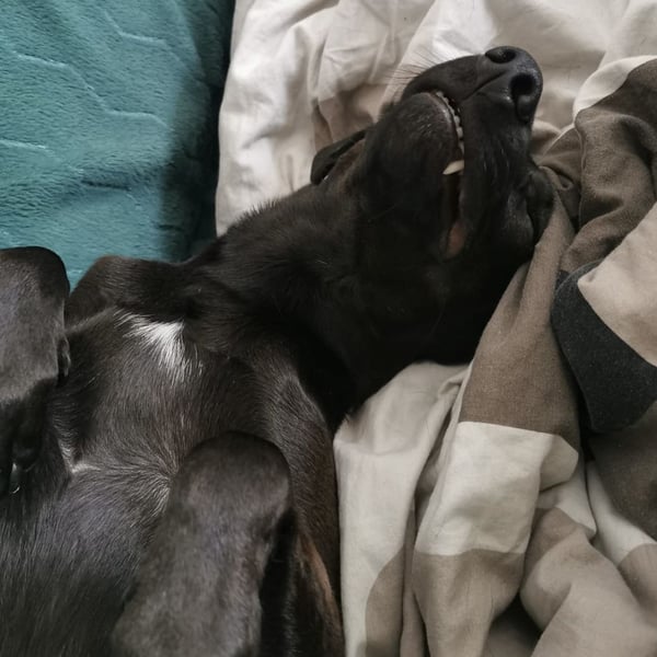 Zuhause ist er entspannt, wenn aber Besuch kommt, will er im Mittelpunkt stehen, freut sich wie verrückt und Frauchen hat nicht mehr das sagen.