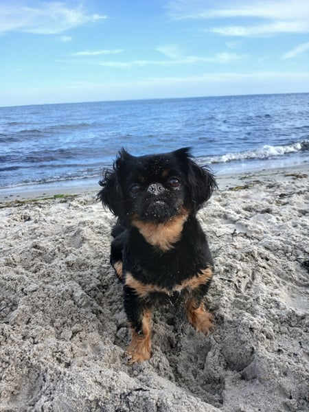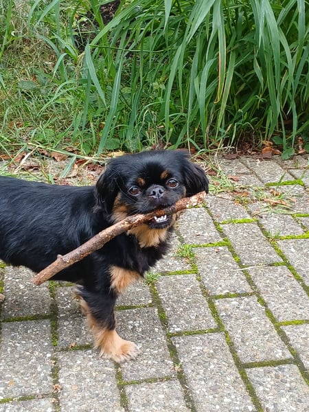 Sie ist 26cm groß, hat 5,5 kg und ist ein Pekinesen Mix.