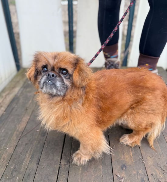 Döme ist ein kleiner, rotfelliger Pekinese-Rüde mit 30 cm Schulterhöhe und 6,8 kg Gewicht. Geboren wurde er am 01.01.2017, und seit dem 10.01.2026 befindet er sich in unserer Obhut. Er ist kastriert und gechipt.