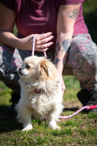 Primrose bringt eher ein angenehmes Temperament mit. Sie zeigt sich gelassen und entspannt und lässt sich nicht so schnell aus der Ruhe bringen. Peregrin hingegen ist ein typischer Junghund. Aktiv, bewegungsfreudig, manchmal noch etwas tollpatschig und immer mitten im Geschehen. Ein kleiner Wirbelwind mit viel Energie und Lust auf Abenteuer. Natürlich müssen beide noch einiges lernen – vom Hunde-ABC bis zu den kleinen Regeln des Alltags. Mit anderen Hunden sind sie verträglich und sozial.
