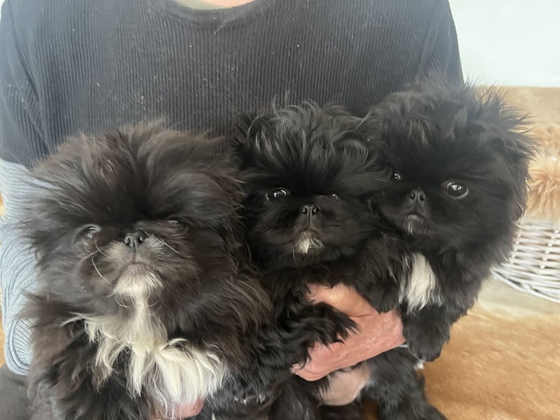 Am 26.12.2024 erblickte unsere reinrassiges Pekinesenbabys das Licht der Welt. Kleine Kostbarkeiten für Liebhaber und Kenner. 4 Schwarze Mädchen. Der 3. Wurf der stolzen Mama Mia Madonna MedusaComtesse d'Aix la Chapelle: 3 Welpen. Der Vater der Welpen ist Casanova Bandit Wyn - D - Hill Under The Covers, Sohn von Tiger Wyn - D - Hill, internationaler Champion. Weitere Vorfahren sind Stella Berryl-Abü of Firwood (Nachkomme von Othello von la-Bri u. Shakira Saskia of Firwood) und Adonis Zeus de Monaco.