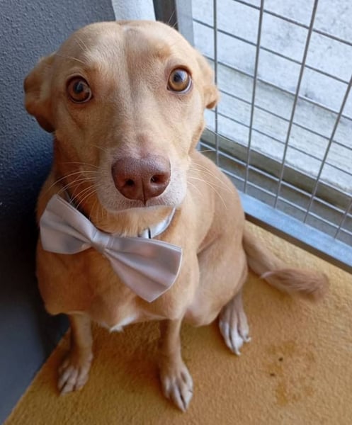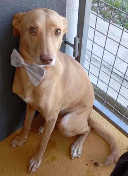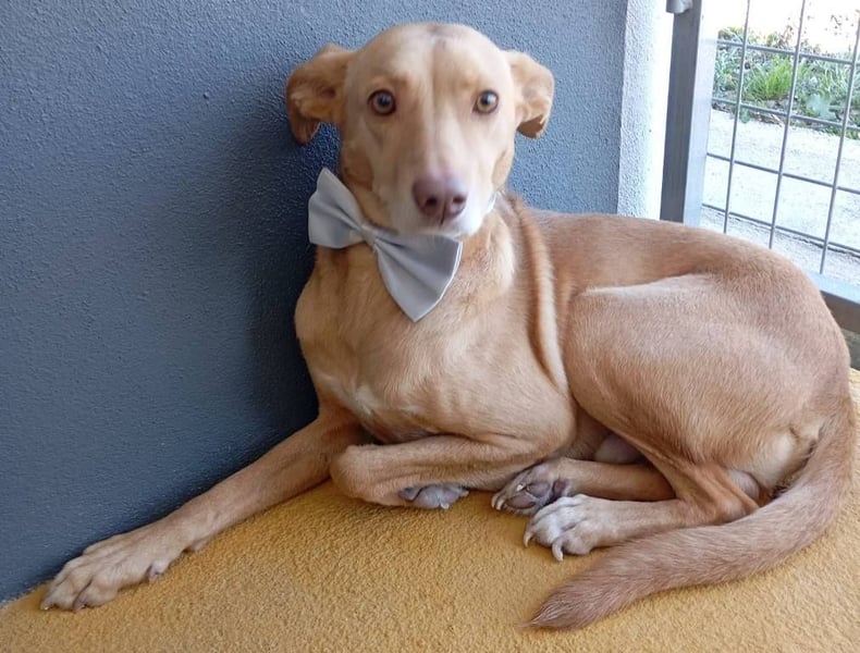 Mit seinen bernsteinfarbenen Augen ist er sehr hübsch. Mike ist ein zarter und sanfter Bub, verträglich mit anderen Hunden.