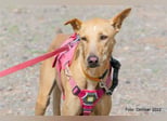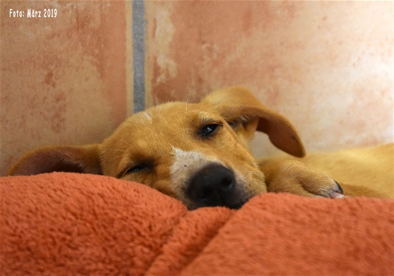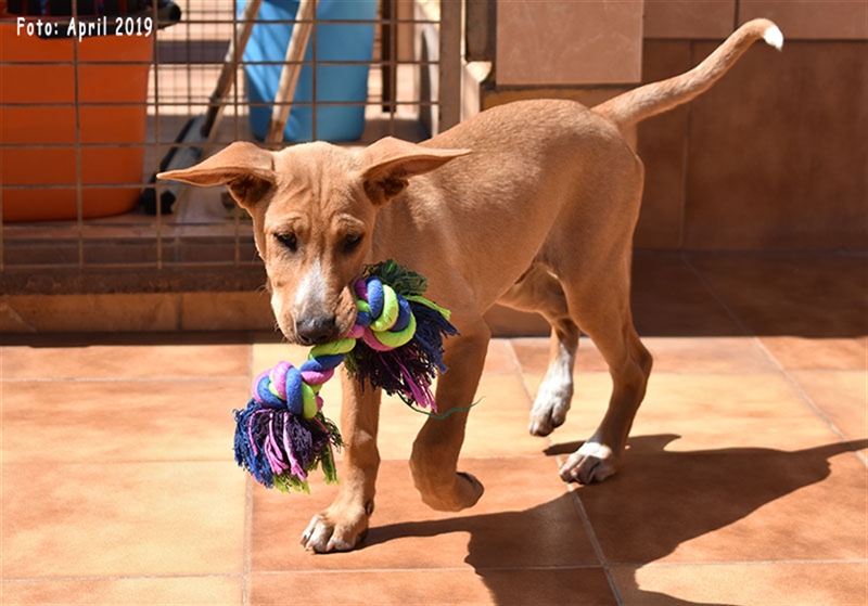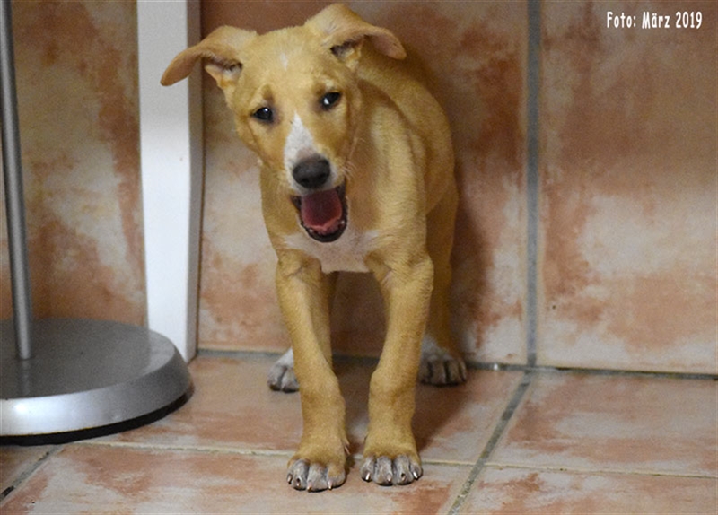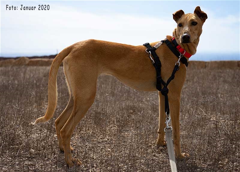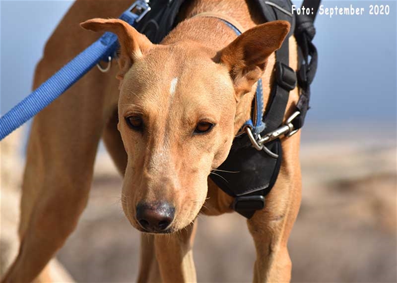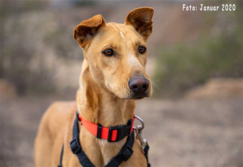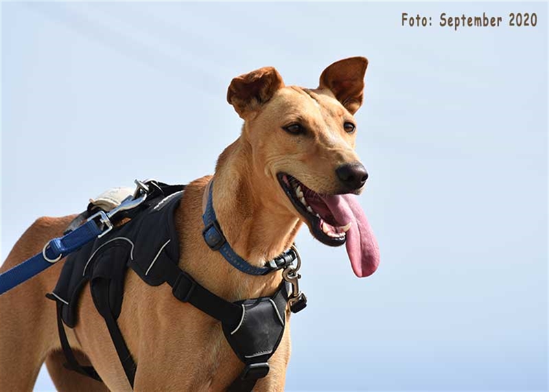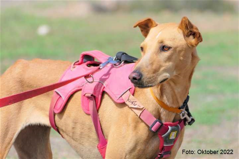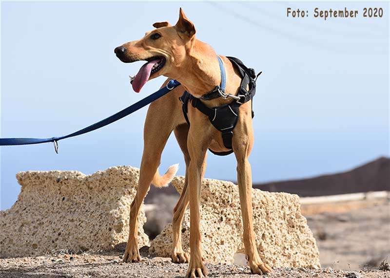 Bisher zeigt sie übrigens keinen ausgeprägten Jagdtrieb, obwohl sie Podenco-Gene in sich trägt. Dieser kann sich aber möglicherweise im neuen Zuhause noch entwickeln.
