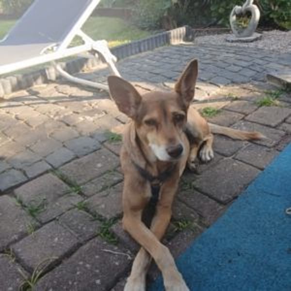 Aufgrund ihres Alters und der Spondylose ist ein Zuhause mit möglichst wenig Treppen und einem Garten ideal.