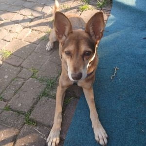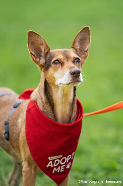 Hier kommt Lua, eine bezaubernde Podenco-Mischlingshündin. Mit ihrem sanften braunen Fell und einer Größe von 46 cm ist sie ein echter Hingucker und eine treue Seele.