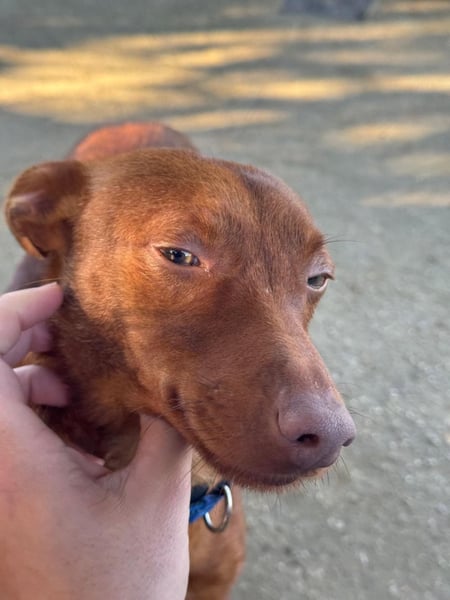 Im Tierheim unserer Freunde von El Buen Amigo wartet Chencho darauf, endlich seine eigene Familie zu finden. Dieser bezaubernde Podenco mit seinem glänzenden, dunkelroten Fell und der charakteristischen roten Nase ist schon auf den ersten Blick etwas ganz Besonderes. Seine Stehohren, die er windschnittig und charmant einklappen kann, und seine grünen, wachen Augen runden das Bild des perfekten Herzensbrechers ab – und es gibt kaum jemanden, dem Chencho kein Lächeln ins Gesicht zaubern kann.
