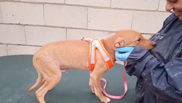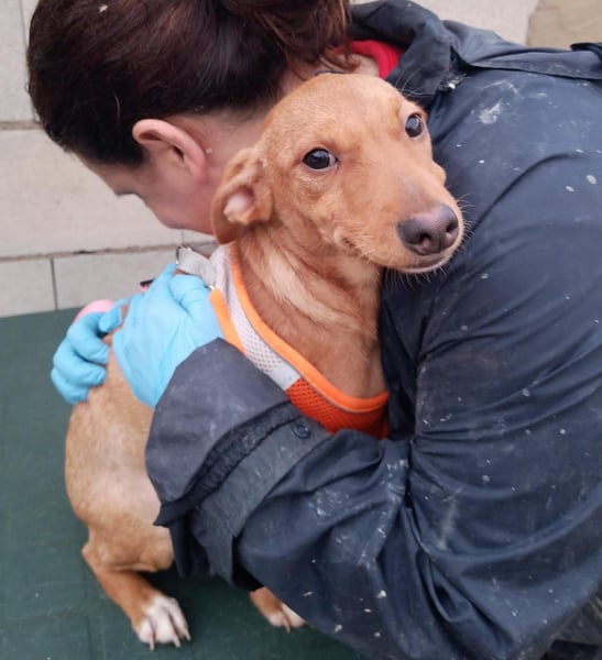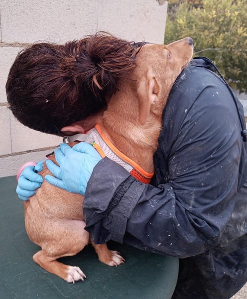 Tibs wurde von einer Anwohnerin entdeckt – ein winziger Welpe, der sich zitternd im Gebüsch am Straßenrand versteckte. Immer wieder versuchte er zu fliehen, doch sie gab nicht auf: täglich brachte sie ihm Futter, bis er schließlich mit Hilfe eines Kollegen gesichert werden konnte.