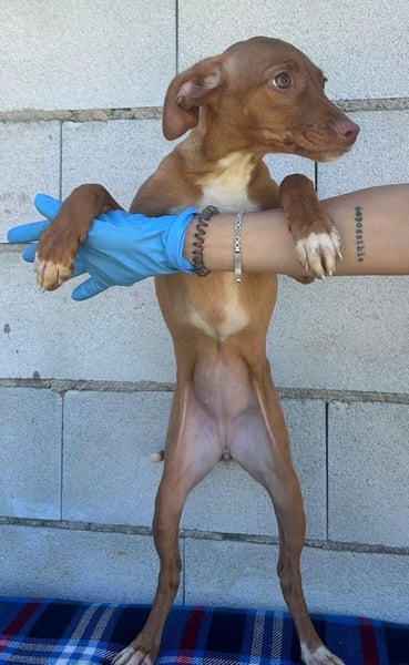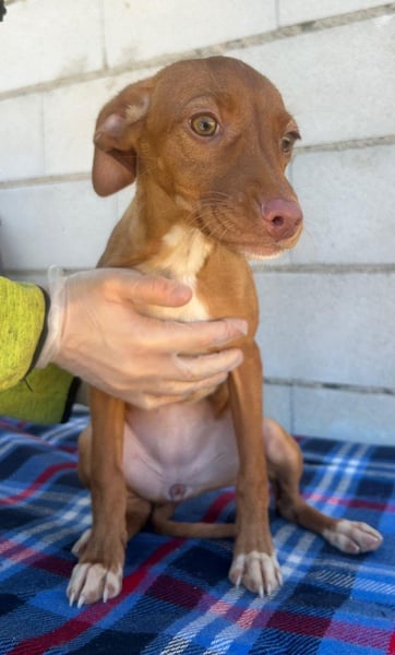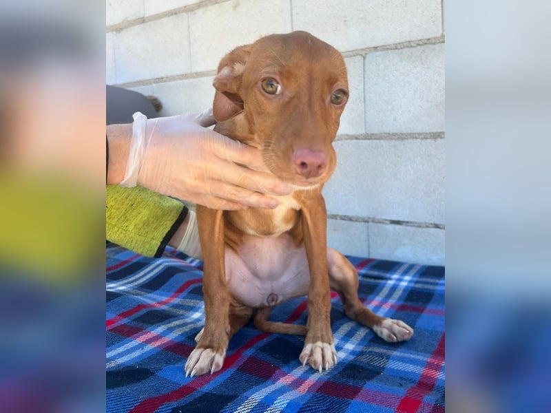 Die kleine Gabbana ist eine junge Podenco-Mix-Hündin, geboren im Dezember 2025, und lebt derzeit noch in Spanien. Sie ist gechipt, geimpft und steht noch ganz am Anfang ihres Lebens. Ein Test auf Mittelmeerkrankheiten kann deshalb altersbedingt erst ab einem Alter von sechs Monaten erfolgen.