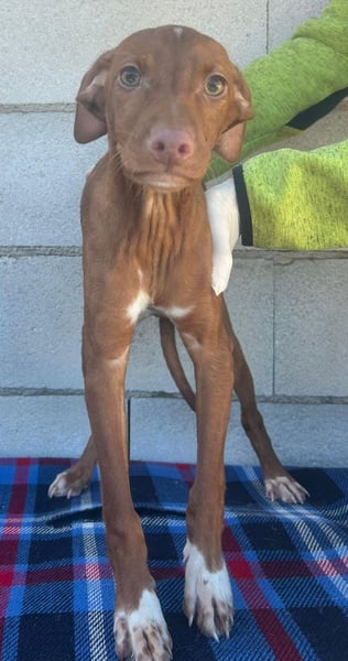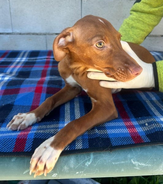 Der kleine Dolce ist ein junger Podenco-Mix-Rüde, geboren im Dezember 2025, und lebt derzeit noch in Spanien. Er ist gechipt, geimpft und steht noch ganz am Anfang ihres Lebens. Ein Test auf Mittelmeerkrankheiten kann deshalb altersbedingt erst ab einem Alter von sechs Monaten erfolgen.