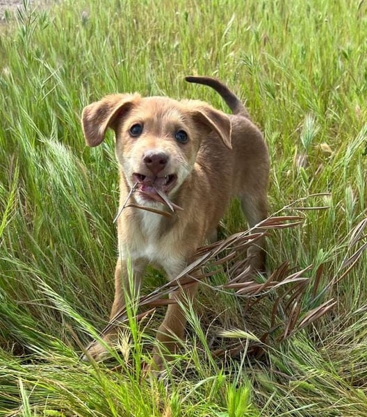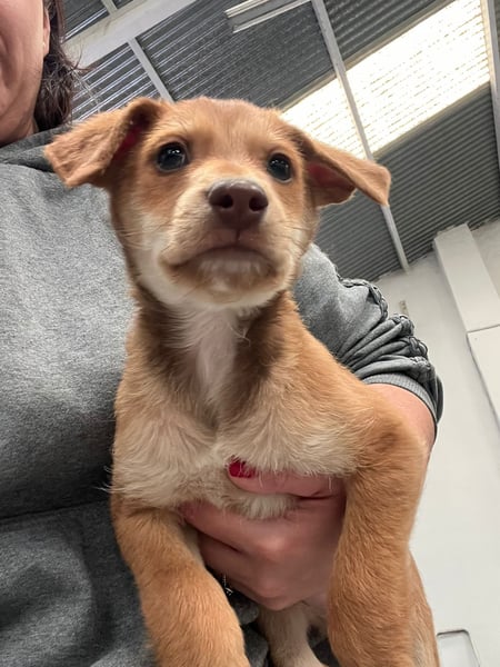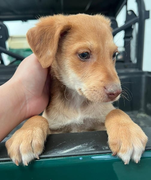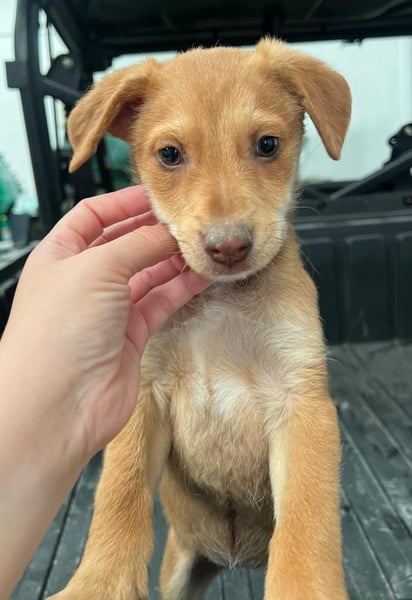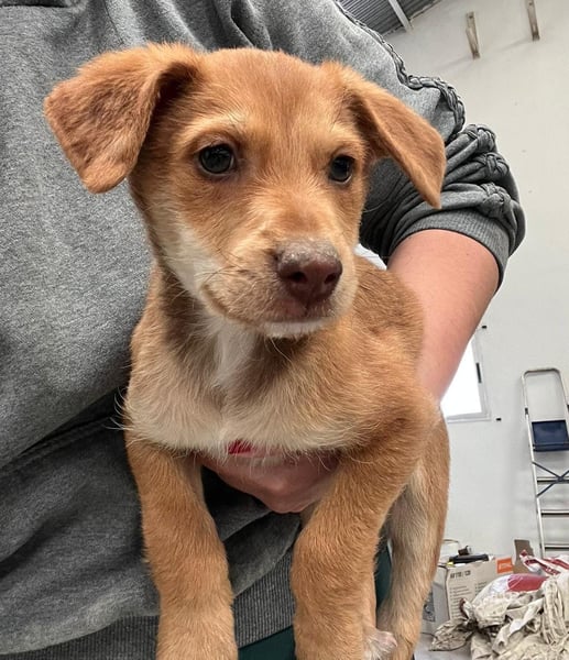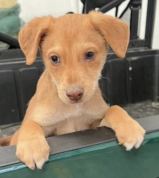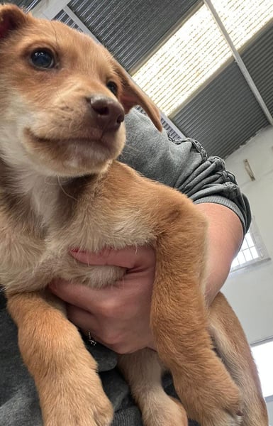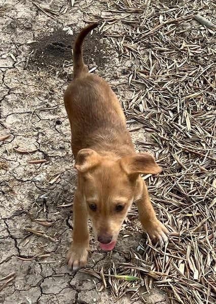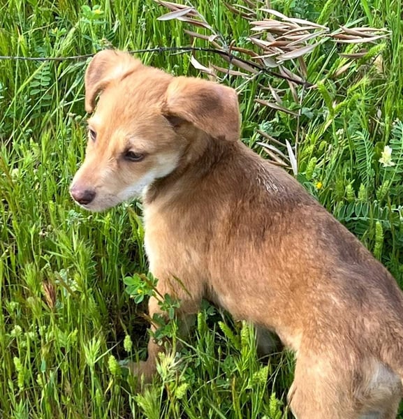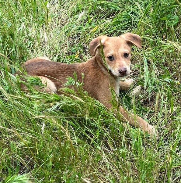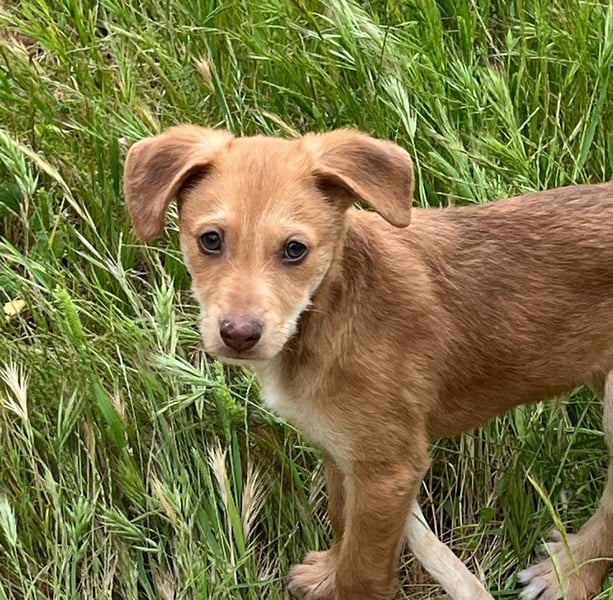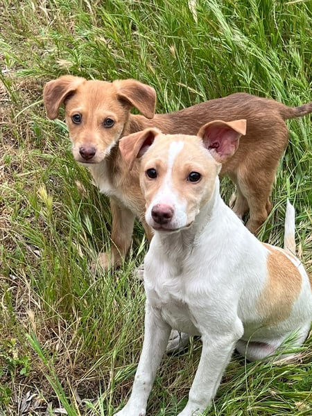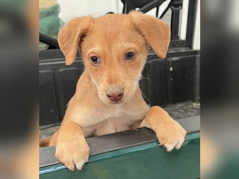 Da wir keine Informationen zu den Elterntieren haben, können wir ihre Rassemerkmale und ihre spätere Größe nur schätzen. Optisch vermuten wir Podenco-Anteile, sicher sagen lässt sich das jedoch nicht.