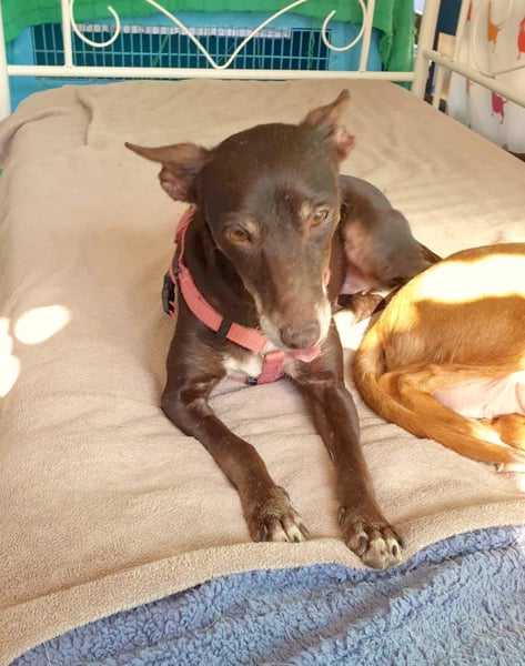 OLIVIA, geboren am 01.07.2019, ist eine zarte Podenco-Mix Hündin von vierzig Zentimetern und nur acht Kilogramm, doch ihr Wesen ist größer als jedes Maß. Ihr Leben begann mit Herausforderungen, denn sie wurde mit einer durchgebissenen Leine aufgefunden, nachdem sie ihrem Jäger entkommen war. Da dieser bereits als problematisch bekannt war, durfte OLIVIA nicht zu ihm zurückkehren. Bei der nötigen Kastration wurde ihr Chip entfernt, außerdem musste ein Geschwür am Gesäuge operiert werden, wovon sie sich inzwischen vollständig erholt hat.