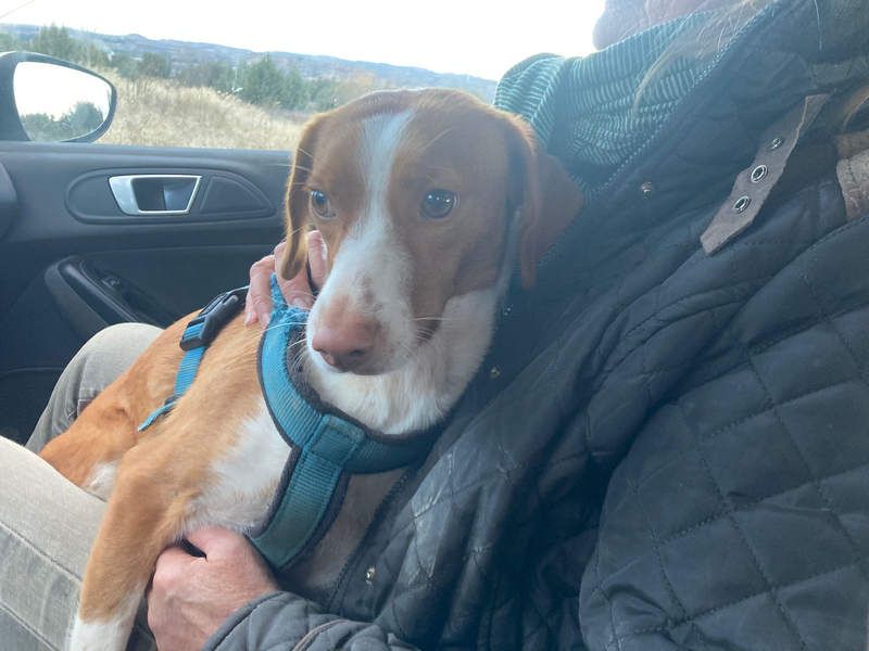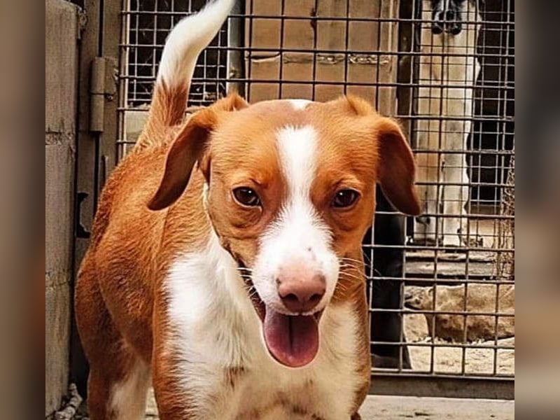 Als Fintis mit ihrem schönen rotbraunen Fell, ihren weißen Abzeichen, den „Sommersprossen“ an ihren Vorderbeinen und den Schlappöhrchen im Tierheim ankam, war von ihrer Schönheit nichts zu erkennen. Sie war von ihren eigenen Exkrementen bedeckt, weil sie bei einem Vermehrer von kleinen Hunderassen („Hundezuchtstätte“) in einem Käfig (nein, kein Zwinger!) gehalten wurde – wie dort insgesamt ca. 80 Hunde! Sie bekam lediglich Futter und Wasser. Kein Auslauf, kein Spielen, keine Zuneigung, kein Streicheln. Es verwundert daher nicht, dass sie sich, als sie im Tierheim ankam, zunächst nicht anfassen ließ. Sie war sehr verunsichert und kannte keine Leine, kein Geschirr und auch keinen Spaziergang.