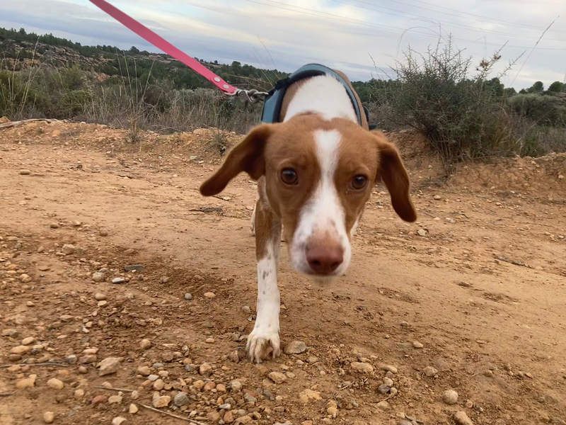 Die kluge Fintis entspannt sich im Kontakt mit Menschen zusehends, beginnt Streichel- und Kuscheleinheiten immer mehr zu mögen und wird anhänglicher. Auch bei Spaziergängen wird sie sicherer. Allerdings ist ein Tierheim nicht der Ort, um beständig lernen zu können. Es fehlt u.a. einfach die Zeit. Es wäre schön, wenn Fintis eine aktive, gelassene Familie (mit größeren, verständnisvollen Kindern) findet oder einen Menschen mit Zeit, Ruhe, Geduld und Verständnis. Um den gemeinsamen Alltag so schön und angenehm wie möglich gestalten zu können, muss die süße Fintis sicherlich noch einiges in ihrem Tempo lernen. Ein Zuhause mit einem eingezäunten Garten wäre ein Traum für dieses lauffreudige Podenco-Mischlingsmädchen. In dem passenden Zuhause wird sie sicherlich bald Vertrauen zu ihren Menschen fassen und ihre Unsicherheit langsam ablegen. Ein freundlicher Hund in ihrer zukünftigen Umgebung würde ihr beim Einleben helfen, denn mit anderen Hunden versteht sie sich wunderbar.