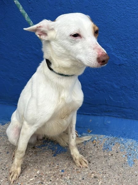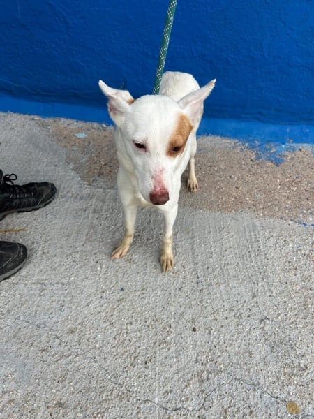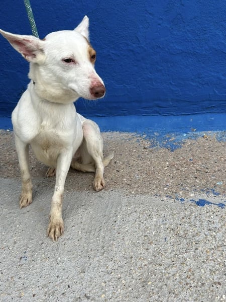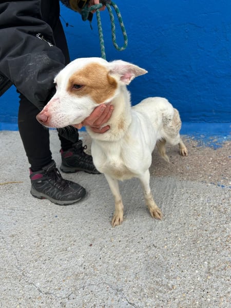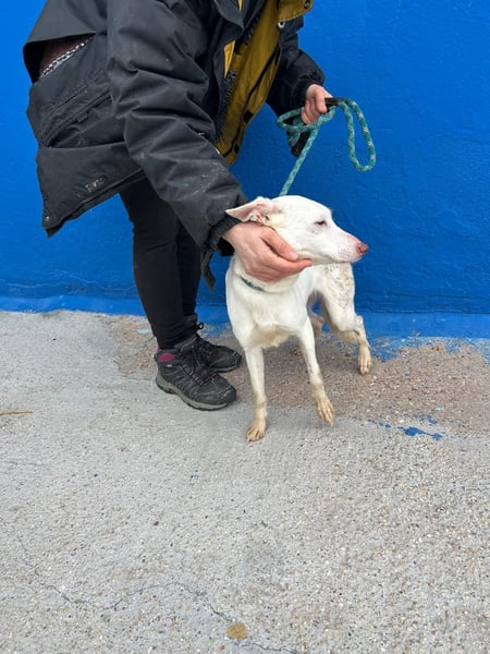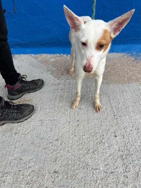 Luni ist eine junge, bezaubernde Podenco-Hündin, die mit ihrem besonderen Aussehen sofort das Herz berührt: Eine Gesichtshälfte strahlend weiß, die andere in einem sanften Hellbraun – ein Ausdruck, der ihre Sensibilität und Zartheit noch stärker hervorhebt. Geboren am 15. April 2023, etwa 41 cm groß, gechipt, geimpft und bei Ausreise kastriert, wartet sie derzeit in Spanien (Burgos) auf die Menschen, die ihr endlich zeigen, wie schön ein Hundeleben sein kann.