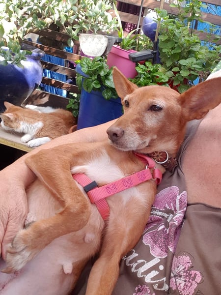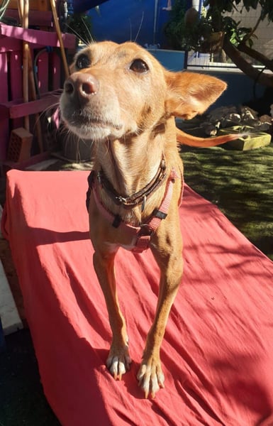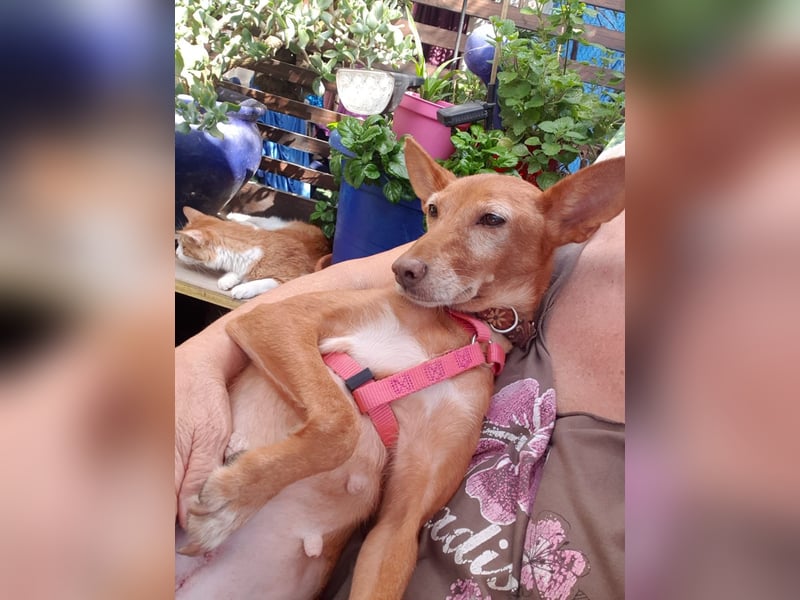 CHISPA, eine zarte Podenco-Mix-Hündin, kam am 20.12.2018 zur Welt und bringt mit ihren 40 cm und 8 kg pure Leichtigkeit und Herzenswärme in jeden Tag. Sie geht mittlerweile entspannt und gerne an der Leine und genießt ihre Spaziergänge in vollen Zügen. Nachdem sie einst einem Jäger entwischt ist und bei ihrer Kastration auch eine kleine Geschwulst entfernt wurde, ist heute alles wunderbar verheilt und sie darf ihr neues Leben unbeschwert genießen.