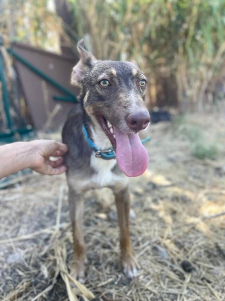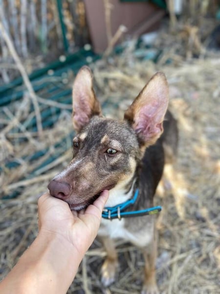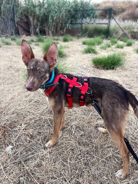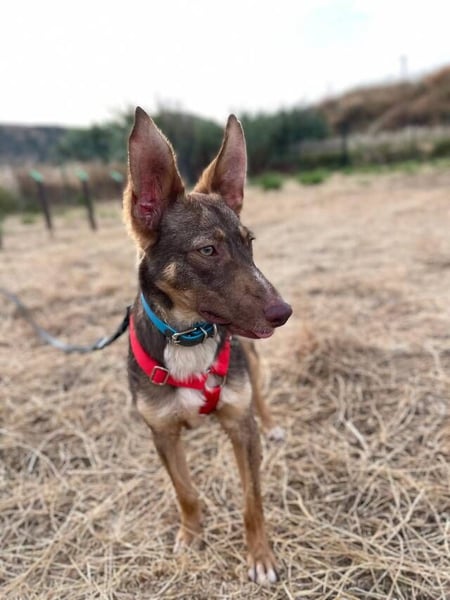 Elven (*ca. 01/2024, ca. 40 cm) ist ein wunderschöner kleiner Rüde, von dem wir glauben, dass er vielleicht ein Podenco-Kelpie-Mischling sein könnte, aber natürlich können wir das nicht genau sagen. Als er ankam, dachten wir zuerst, dass er noch ein Welpe wäre, weil er so klein, schlank und zart war, aber es stellte sich heraus, dass er schon eher ein junger Erwachsener als ein Welpe ist. Und mit seinen ausdrucksstarken Augen und seiner süßen Figur ist er ein echter Hingucker!