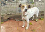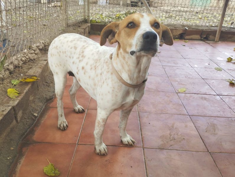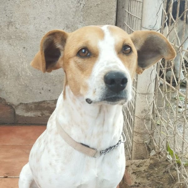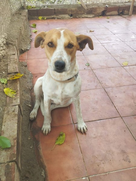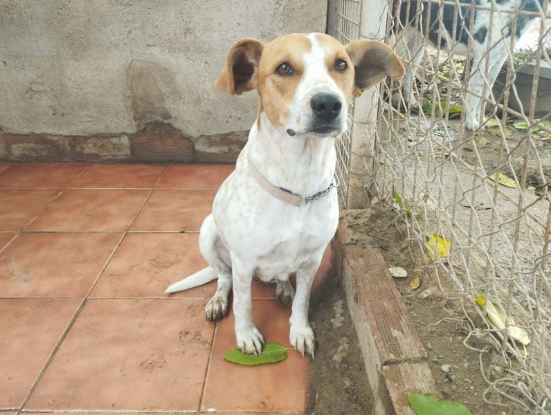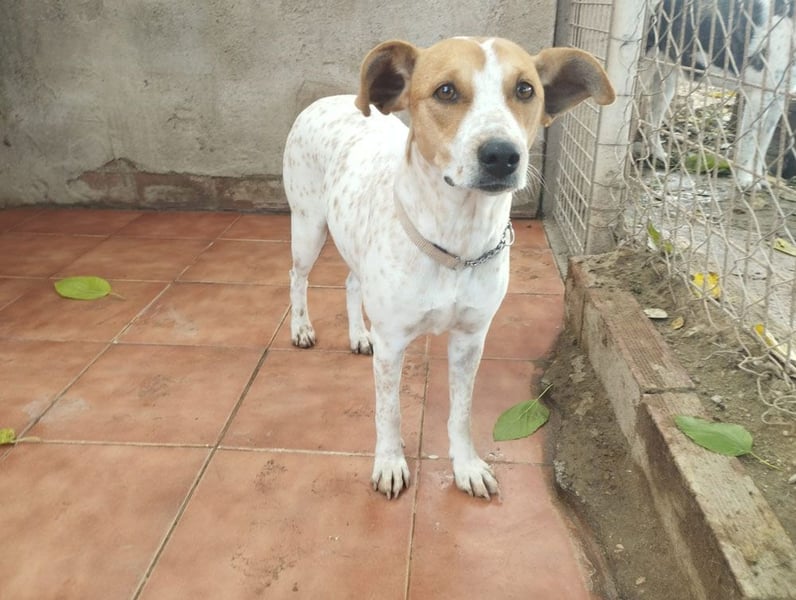 Die ca. 39 cm große Hundedame wurde gemeinsam mit ihrem Sohn Kiko in der Nähe von Andújar (Südspanien) gefunden. Auf einem weitläufigen Gelände, auf dem aktuell eine große Solaranlage entsteht, suchen immer wieder ausgesetzte Hunde nach Futter und Schutz. Sara kam dünn und hungrig ins spanische Tierheim – und zeigte dort vom ersten Moment an ihr freundliches, menschenbezogenes Wesen.