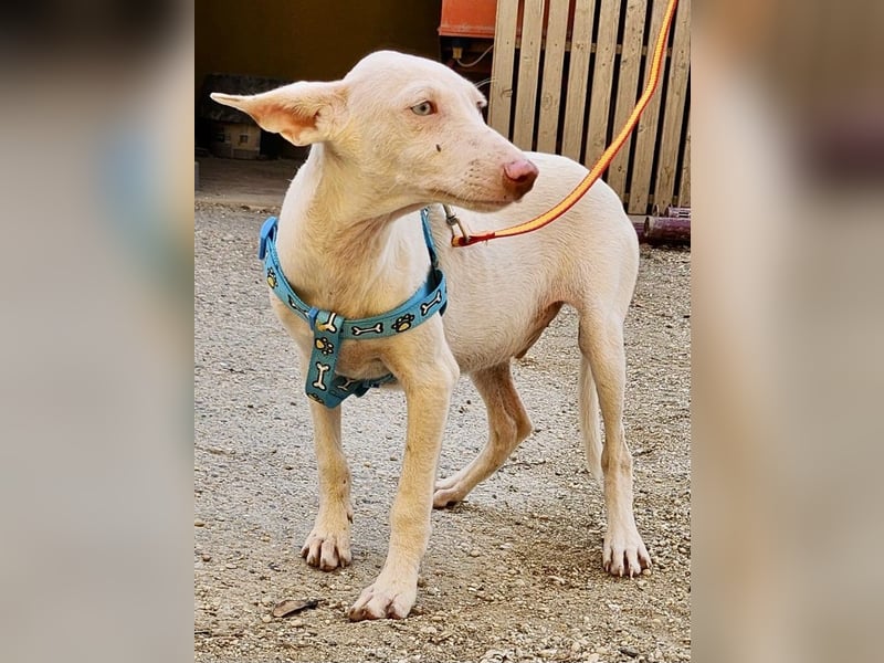 Turron (4572) Podenco Andaluz - Mix Rüde, geb. am 18.06.2025, hat derzeit eine Schulterhöhe von 36 cm und wiegt aktuell 7 kg.