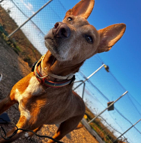 Chico wurde als Welpe von Montse vor 7 Jahren auf dem Weg ins Kino gefunden. Natürlich
