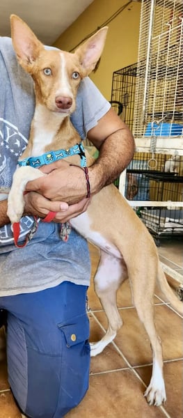 Daria (4553) Podenco Andaluz - Mix, geb.am 04.03.2025, hat derzeit eine Schulterhöhe von 41 cm und wiegt 8 kg.