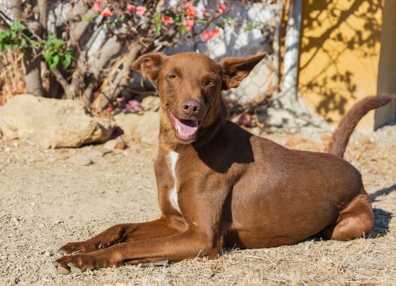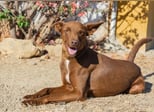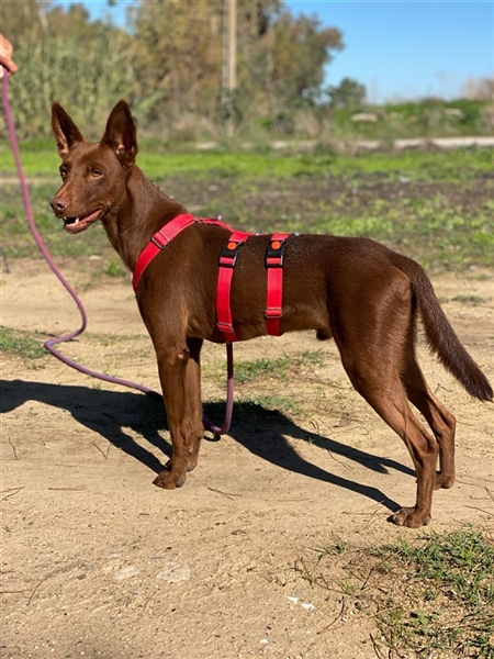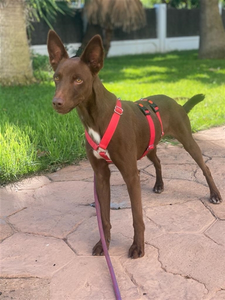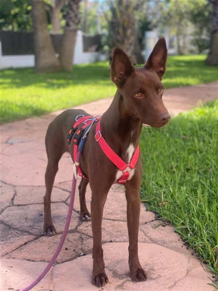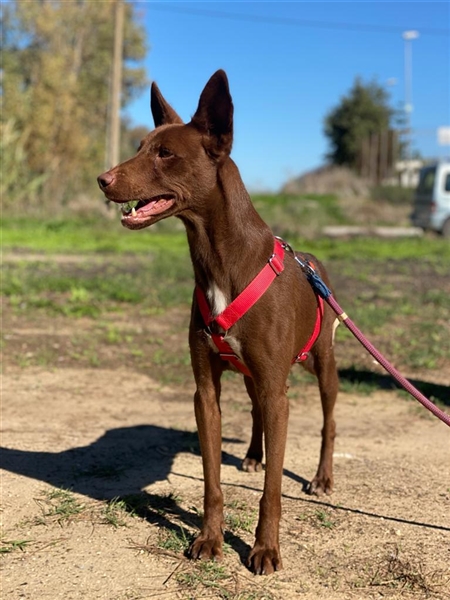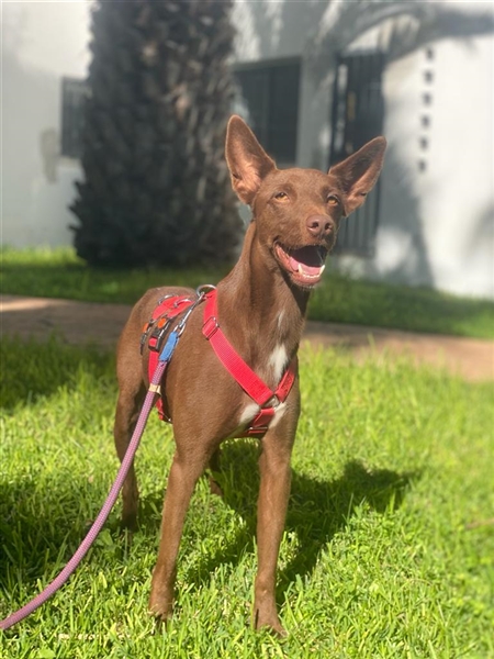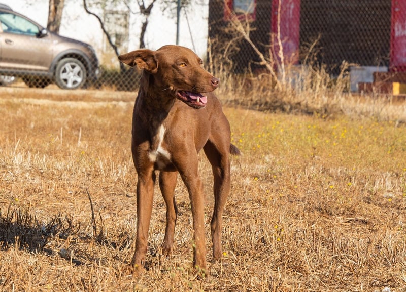 Fly ist ein schokobrauner, aktiver Podencomix der gerne läuft, und ein perfekter Begleiter für naturverbundene Menschen wäre.