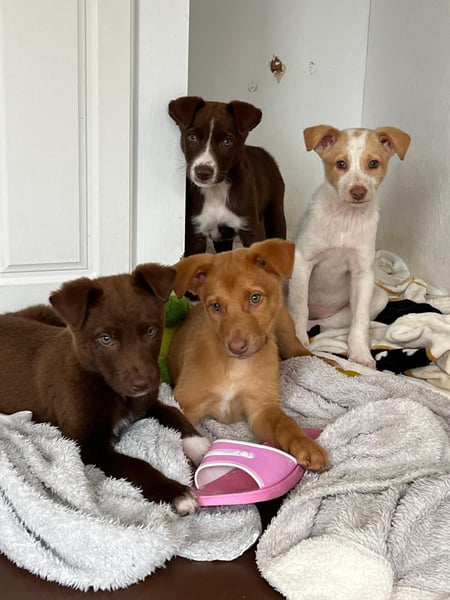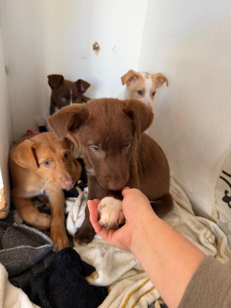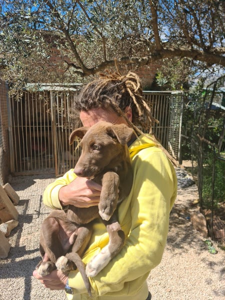 Georg ist ein fröhlicher, lustiger Pudengo-Mischlingswelpe, der vor einigen Wochen gemeinsam mit seinen drei Geschwistern ganz allein aufgefunden wurde. Liebevoll wurde die kleine Rasselbande in unserem spanischen Tierheim großgezogen und umsorgt – und nun ist es endlich soweit: Seine Geschwister haben alle ein wunderbares Zuhause gefunden und dürfen am 11. April nach Deutschland reisen! ✨